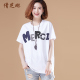 倩芝琳原创大码韩版休闲字母贴布棉T恤宽松短袖上衣2017夏季新品