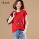 倩芝琳原创大码文艺休闲棉麻刺绣短袖连衣裙中裙女装2017夏装新款