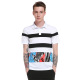 夏季外模实拍新款外贸男士时尚翻领条纹拼接印花短袖T恤