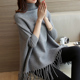 艾韩伊高领毛衣女套头2016秋冬新款大码女装针织衫蝙蝠袖流苏披肩