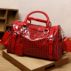 欧美2016新款红色锷鱼纹牛皮波士顿包单肩斜挎手提枕头真皮女包包