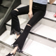 黑色破洞牛仔喇叭裤女韩国九分裤高腰显瘦不规则流苏毛边微喇叭裤
