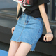 开叉牛仔短裙女2017夏季新款韩版a字包臀裙高腰不规则牛仔半身裙