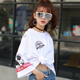 2017夏季韩版BF时尚字母印花中长款宽松圆领套头连衣裙情侣T恤女