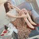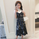 夏季女装新款荷叶边背带连衣裙碎花七分袖雪纺衫鱼尾套装裙两件套