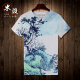 中国风国画山水T恤男短袖衣服复古民族风潮男装竹子印花夏季T恤男
