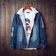 2017秋冬新款乞丐破洞加绒加厚牛仔衫保暖外套男装休闲棉衣羊羔绒