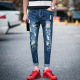 2017夏季新品 潮流男装英伦时尚小脚牛仔九分乞丐破洞青少年9分裤