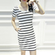 2017夏装新款女装口袋开叉修身显瘦条纹大圆领短袖连衣裙