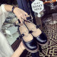 2017夏季新款英伦复古露趾腕绊带厚底凉鞋女休闲平底罗马风格凉鞋
