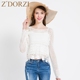zdorzi卓多姿2017春夏款喇叭袖勾花镂空蕾丝上衣女针织衫634E042