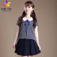 夏装女装两件套修身短款条纹娃娃领T恤套装裙学生半身裙包邮