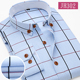男士装中青年春秋季商务格子衬衣韩版修身型薄款长袖衬衫印花寸衫