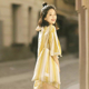 欧洲站17夏季新款明星同款度假风黄白条纹流苏袖连衣裙中长款宽松