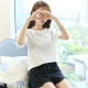 2017韩版新款女装纯色拼接上衣女宽松圆领百搭棉麻袖口系带t恤女