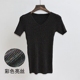 短袖T恤2017春季新款韩版女装V领亮丝紧身显瘦打底针织衫修身上衣