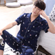 春夏季纯棉质短袖长裤青年夏天开衫男士睡衣薄男款男式家居服套装