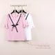 依言 正品2016夏款韩版圆领短袖V字拼接蝴蝶结雪纺衫上衣女YH6107