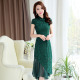 蕾丝连衣裙子女短袖夏季2017淑女气质包臀显瘦收腰镂空旗袍中长款