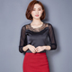 蕾丝衫女2017春装新款百搭立领长袖雷丝衣打底衫修身显瘦网纱上衣