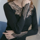 春秋韩版时尚性感蕾丝拼接镂空针织衫打底显瘦修身弹力套头毛衣女