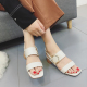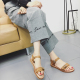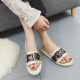 拖鞋女夏2017新款韩版百搭平底草编底外穿时尚露趾一字港风拖鞋女