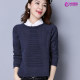 2017春装新款针织衫假两件衬衫领套头宽松翻领长袖打底针织毛衣女