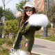 来自星星的你周冬雨同款大毛领迷彩外套狐狸毛皮草军大衣尼克服女