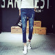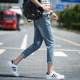 潮男破洞牛仔裤小脚九分裤 春夏季韩版修身青少年学生显瘦9分裤子