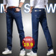 秋季新款男士牛仔裤修身小脚青少年冬天纯色四季牛仔布长裤潮男裤