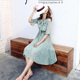 2017夏季新款韩版荷叶边修身雪纺连衣裙女中长款短袖碎花百褶裙子