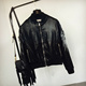 欧洲站秋冬新款PU皮衣女短款羽毛翅膀短款机车服夹克外套棒球服女