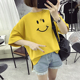 韩版2017夏装笑脸五分袖T恤女宽松学生bf刺绣圆领体恤短袖上衣服