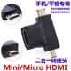 micro hdmi 转 hdmi 转接头微型mini MHL高清线手机连接平板电视