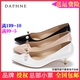 达芙妮 2017春新款尖头中跟单鞋1017101056漆皮V口细跟珍珠女鞋子