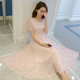中长款裙子夏季2017新款女潮学生韩版名媛短袖网纱刺绣蕾丝连衣裙