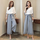 2017夏季新款韩版女装气质时尚阔腿裤套装条纹雪纺上衣两件套女潮