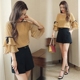 2017夏季新款韩版女装修身印花雪纺上衣时尚套装气质短裤两件套女