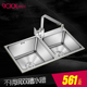 喜色厨房水槽双槽洗菜盆洗碗池304不锈钢加厚拉丝厨盆水槽套餐