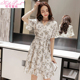 2017夏季新款女装时尚韩版连衣裙V领荷叶袖印花雪纺连衣裙蛋糕裙