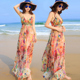 v领性感沙滩裙波西米亚显瘦印花长裙大码雪纺连衣裙吊带裙