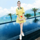 欧芮儿女装夏季2016新款高腰五分袖连衣裙夏气质高腰a字裙中裙子