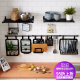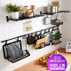 伊沐馨 黑色厨房置物架壁挂太空铝厨房挂件挂杆刀架调味架锅盖架