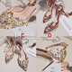Eachiai/仪至爱民族风高跟鞋蝴蝶旗袍鞋细跟尖头复古中式金色婚鞋