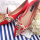 中式婚鞋民族风高跟鞋浅口结婚鞋细跟旗袍鞋禾秀服鞋红色新娘鞋