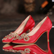 NRR水钻婚鞋红色高跟鞋水晶女结婚红鞋尖头新娘鞋龙凤绣花单鞋秋