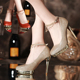 Nrr秋冬浅口细跟单鞋女金色新娘鞋高跟红色水钻婚鞋女33-40码女鞋