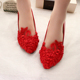 春季特色平底蕾丝新娘鞋 高跟婚礼鞋 中跟红色舒适软底敬酒单鞋女