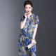 中老年女装夏装上衣中年妈妈装修身大码复古印花套装雪纺时尚套裤