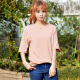 镜淇镜淇16年新品韩版棉t恤女纯色中袖T恤圆领宽松半袖体恤衫